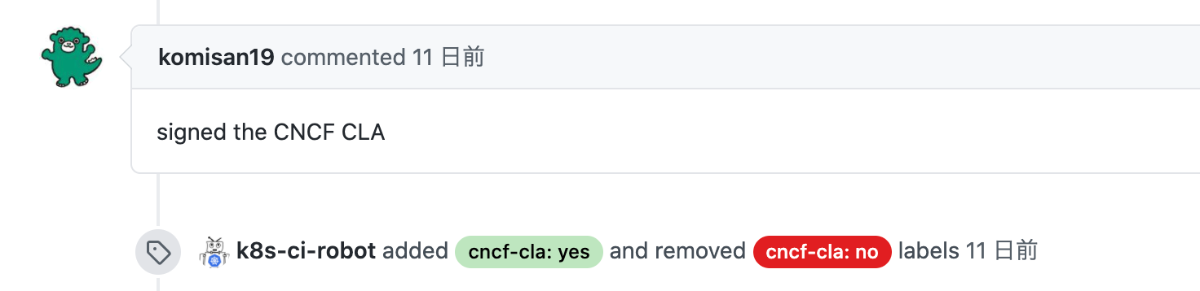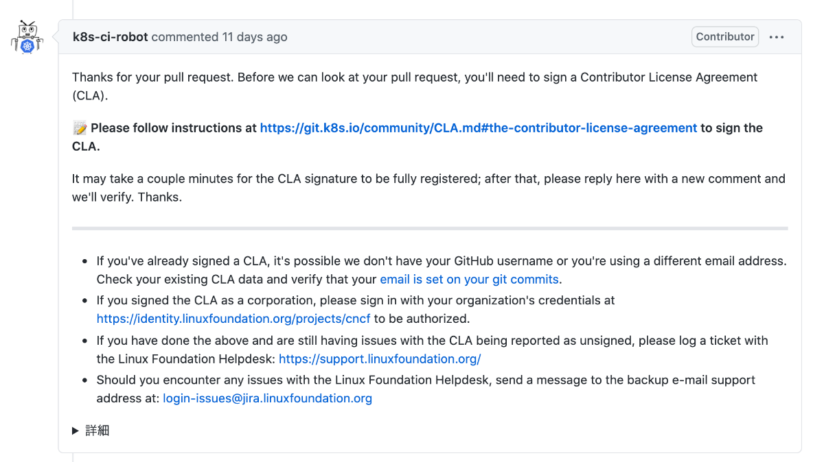 KubernetesではCLAに署名しないとコントリビュートできません!!