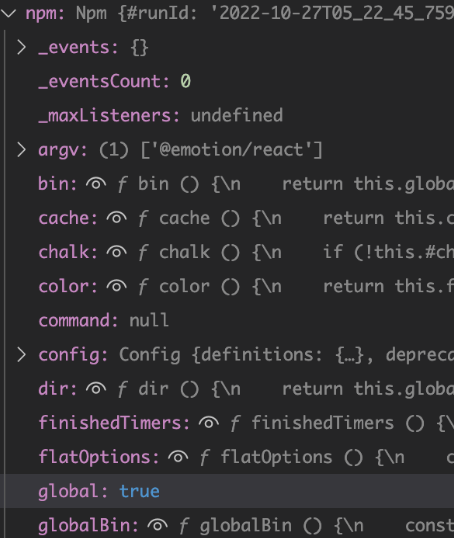 この関数は、 ./lib/npm.js 内の Npm というクラスのメソッドとして定義されています。関数内で、すぐに以下のような部分を見つけました。