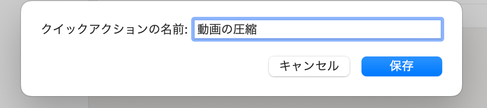command + Sで保存します。クイックアクションの名称に「動画の圧縮」とつけておきます