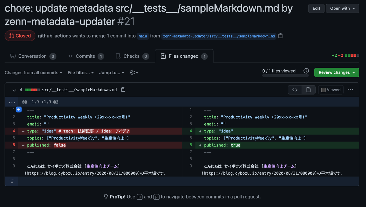 - Zenn のメタデータを自動更新してプルリクを作ってくれる GitHub Action を作ったよ