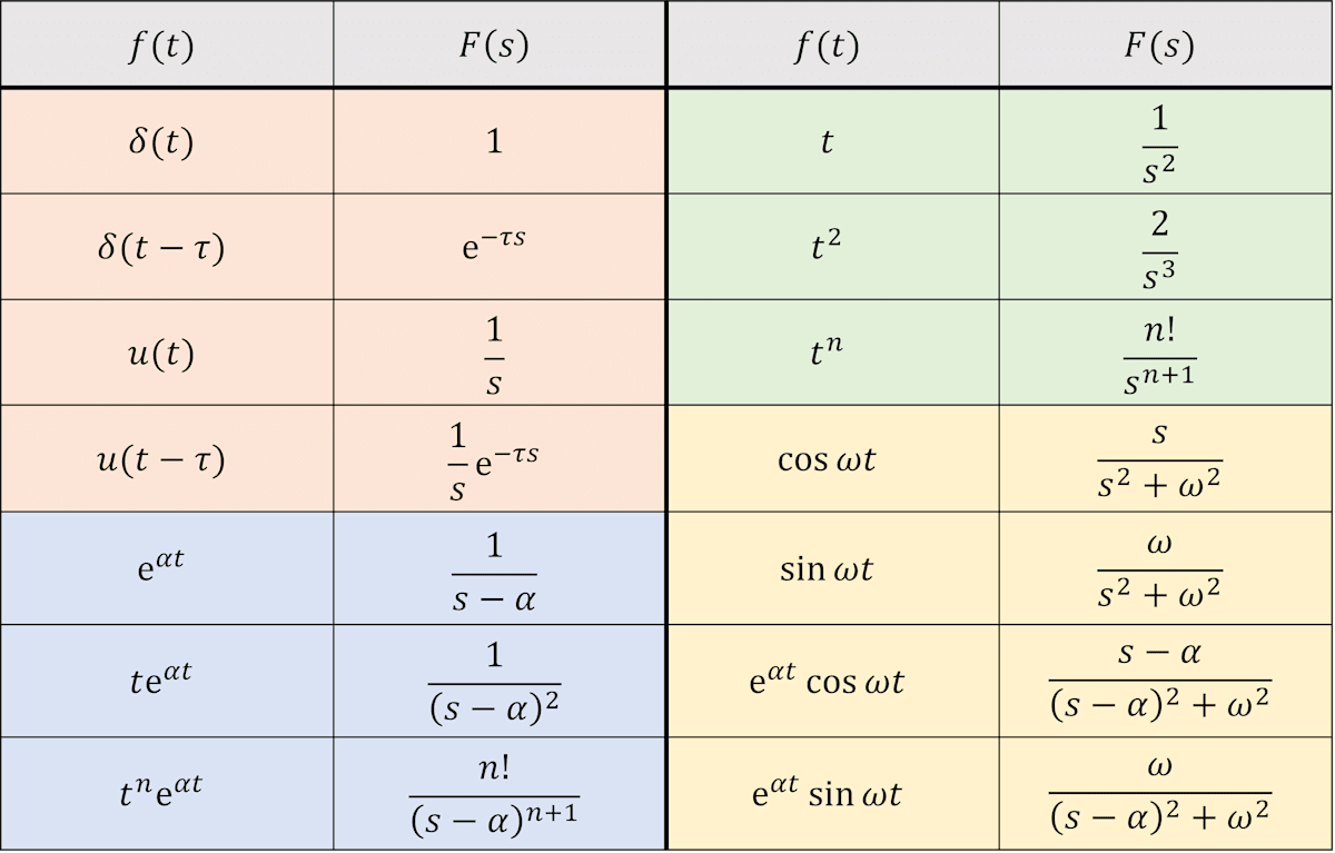 \mathcal{L}[\mathrm{e}^{\alpha t}\sin \omega t] &= \frac{\omega}{(s - \alpha)^2 + \omega^2}