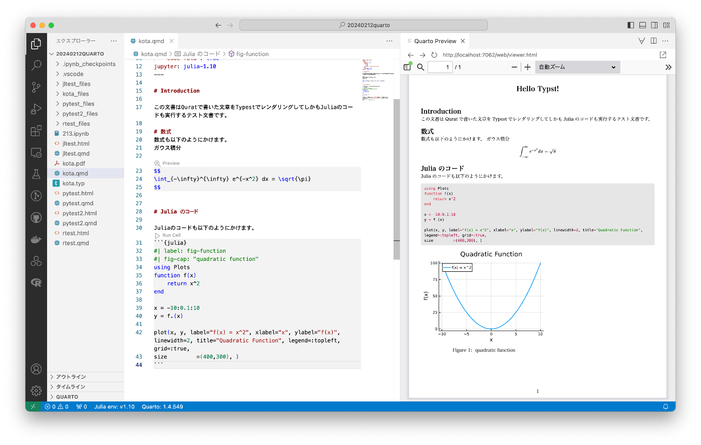 この文書はQuratで書いた文章をTypestでレンダリングしてしかもJuliaのコードも実行するテスト文書です。