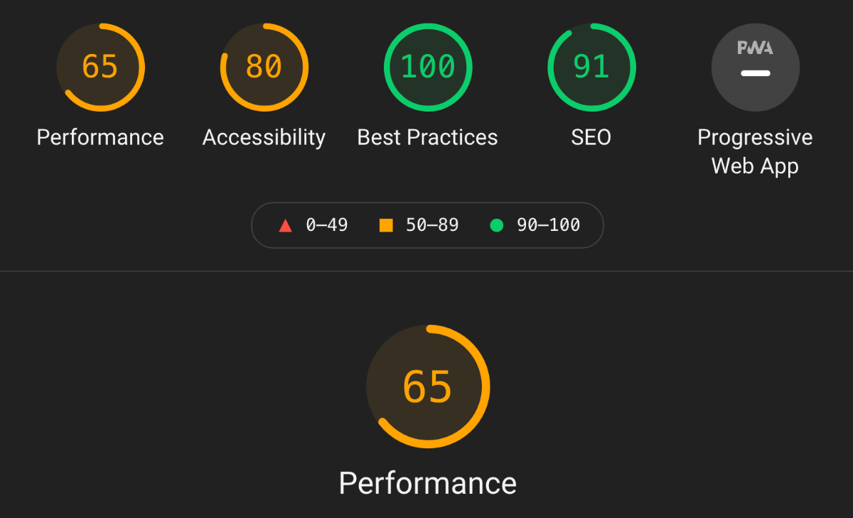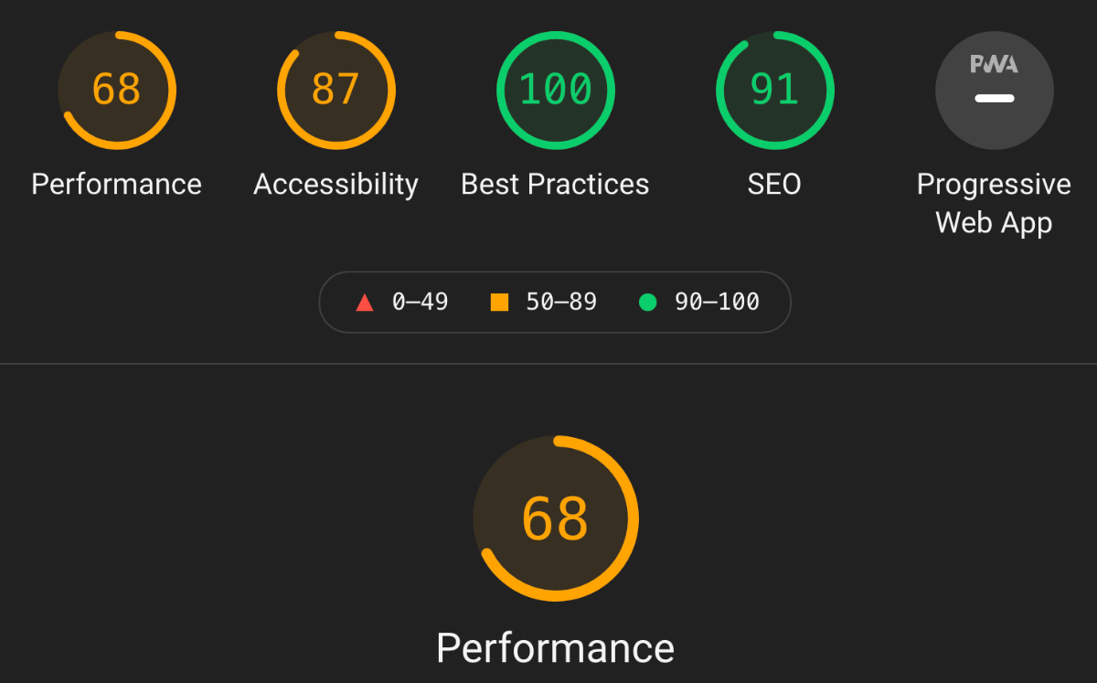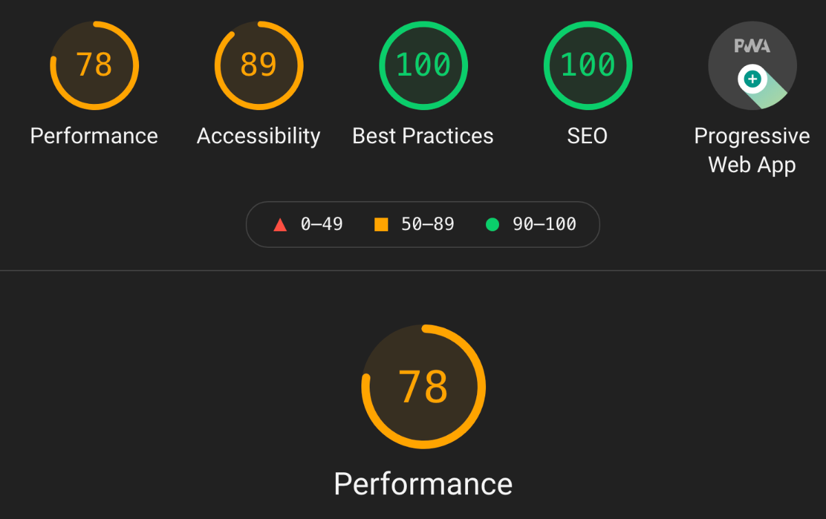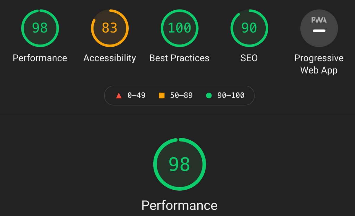 最終的に作ったもののLighthouseスコアを先に出しておきます。特にスコアを上げる対策はなし。