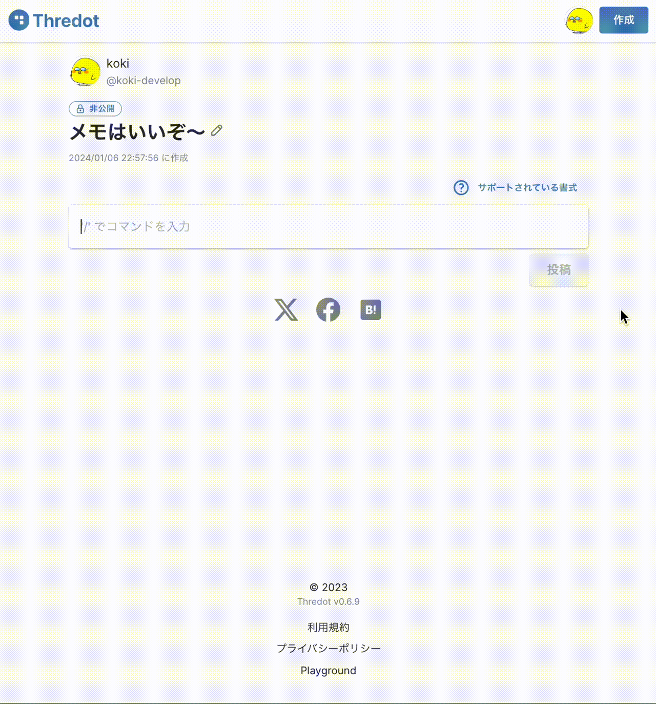 Zenn のスクラップ機能も最高なのですが、より雑にメモを書けるサービスがほしいと思ったので Thredot を作りました。 ( 公開範囲絞りたい & WYSIWYG エディタほしい )