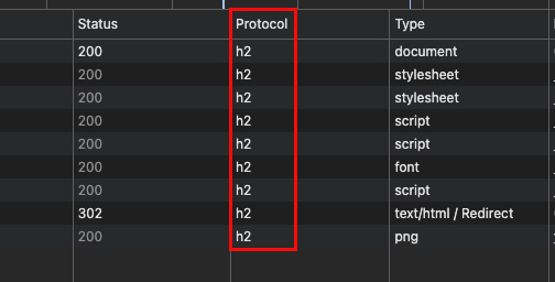 [Protcol]列が"h2"に変わっていることが確認できました。