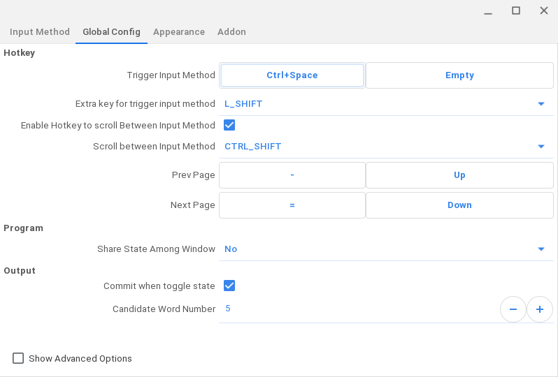 Hotkey→Trigger Input MethodのCtrl+Spaceをクリック。