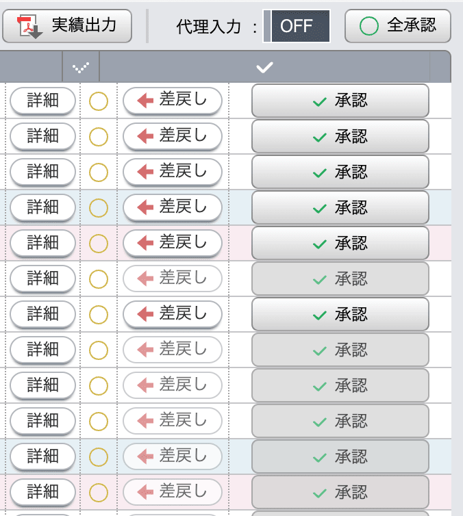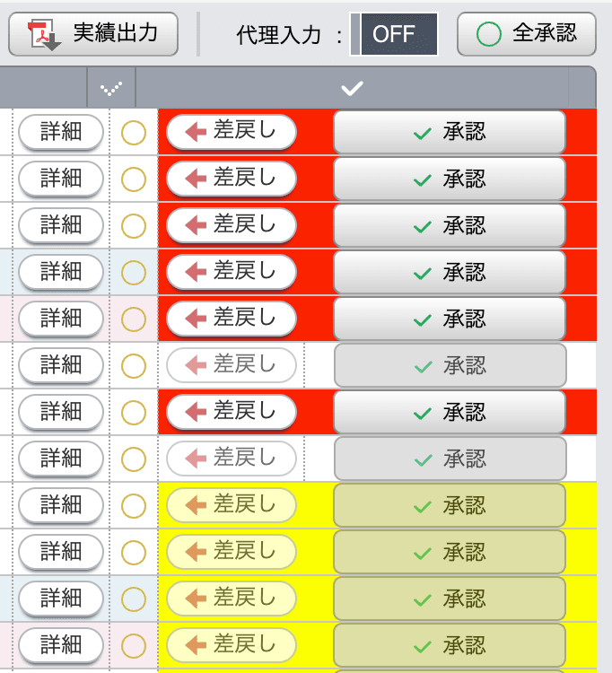 勤怠の承認用の画面で、どれが承認待ちでどれが未申請かどうか、見てすぐに頭に入ったほうがありがたいなと思ったので、過激に色付けしました。