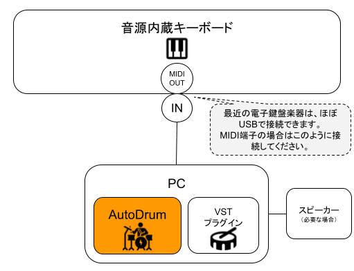 キーボード内蔵ピアノ音源とドラム音源VSTプラグインを使う場合(A)