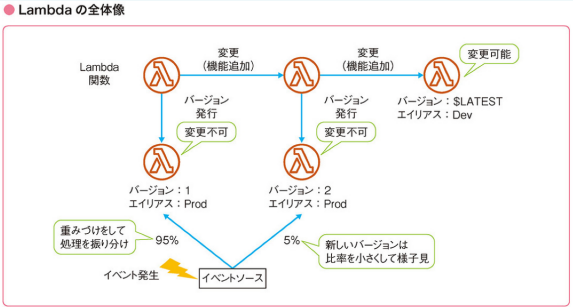 Lambda変更時に、変更前Lambdaに固有ARNバージョン割り当て管理する機能 - エイリアス機能