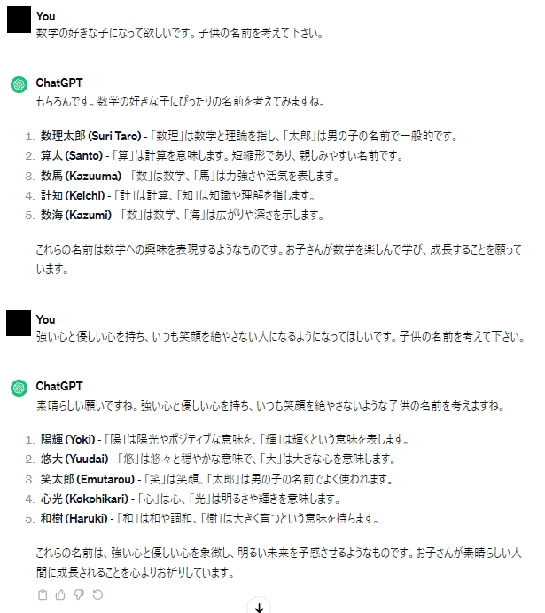 ユーザー: 生まれてくる子供の名前を提案してくれませんか?