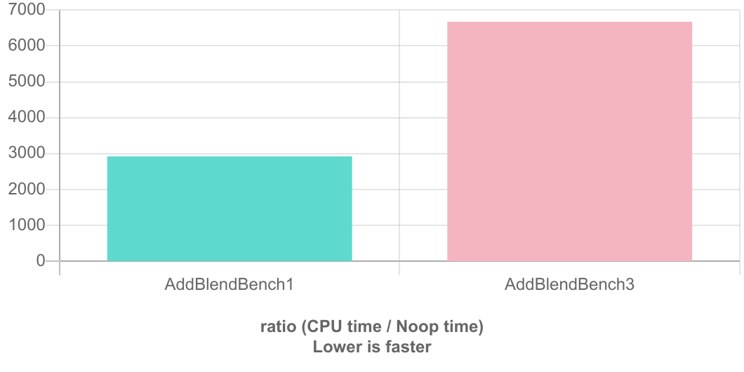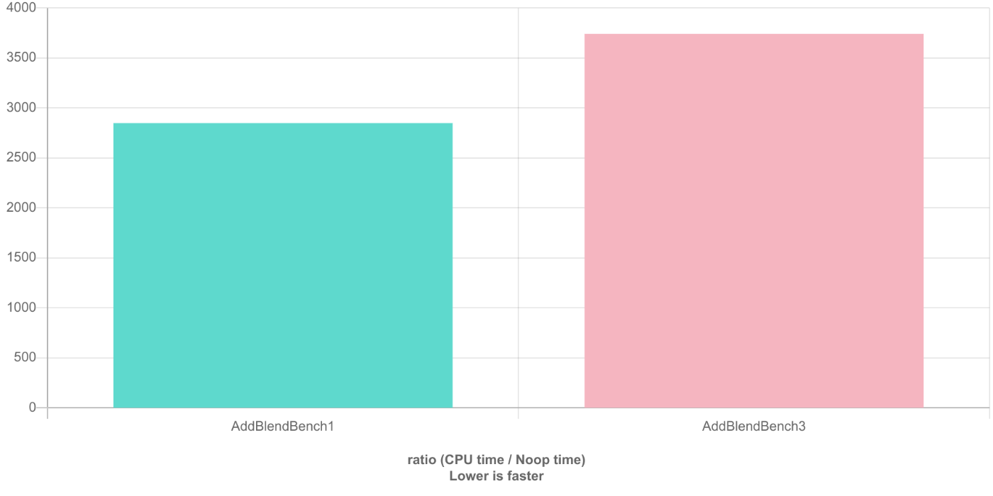長さ4096のuint16_tの乱数列2つに対して飽和加算を行う簡単なマイクロベンチを行う。比較対象はこの記事の上の方に書いた愚直な方法と、オリジナルの記事で紹介されていた高速化された方法である。C++のベンチマークが簡単に取れる Quick C++ Benchmark というサービスを用いて測定した、リンクはこちらである https://quick-bench.com/q/E87luFkw85Kj9YQYmD7jz8SQXP8 。コンパイラはGCC10.2を用いた。
