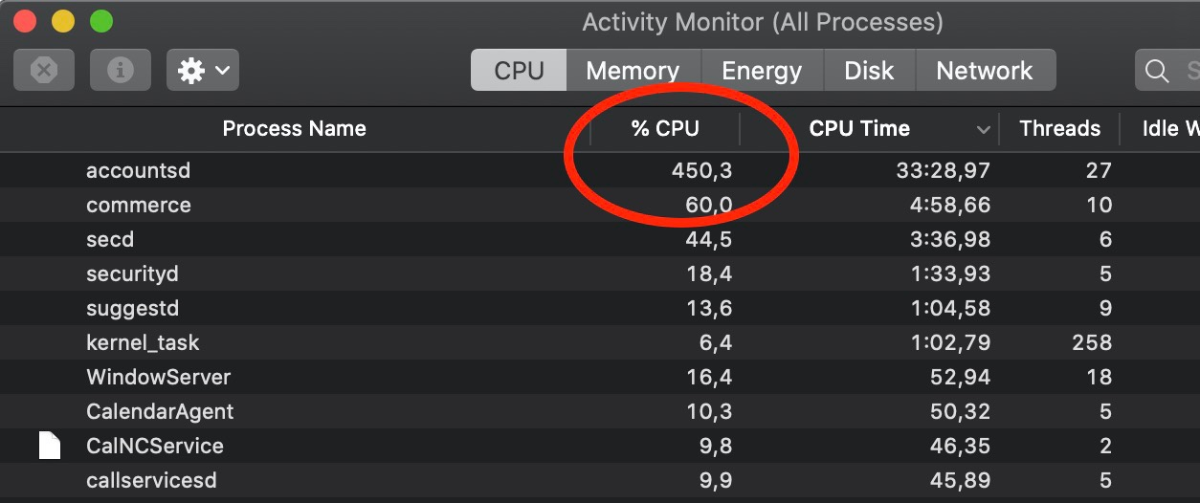 accountsd process 500% CPU in Catalina 10.15.7/Apple公式コミュニティ