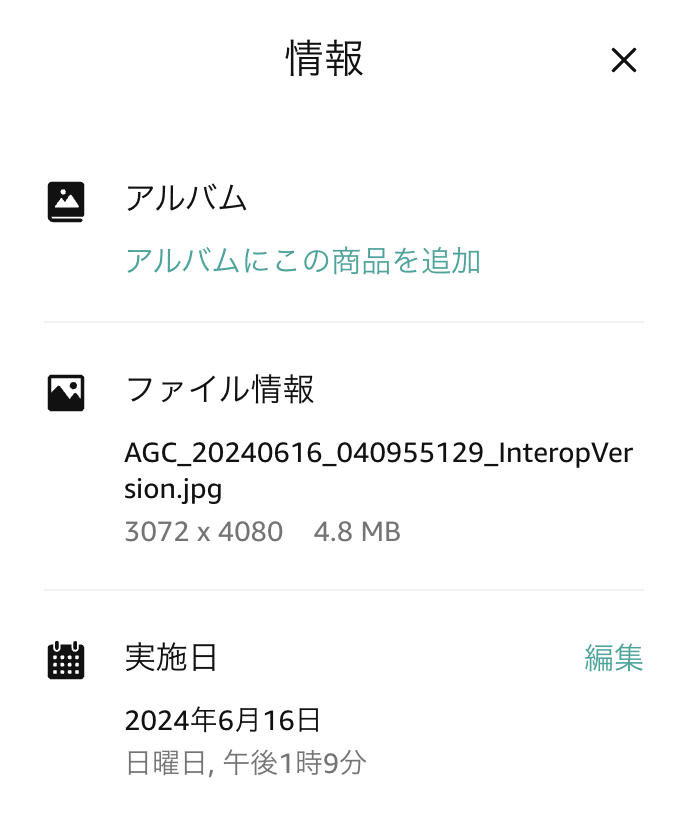 - Amazon Photos では特定の EXIF タグが含まれるか、あるいは含まれない場合、 EXIF に撮影日が含まれる場合であっても「日付なし」となってしまうことがある