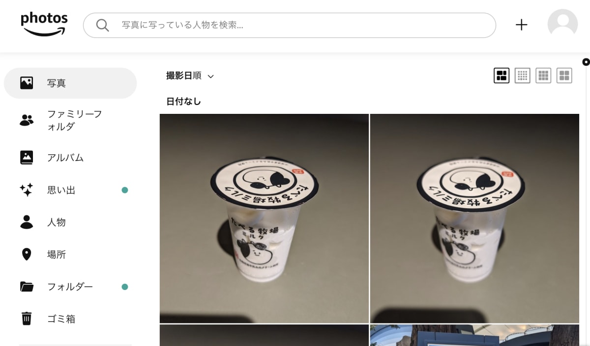 一部の写真が日付なしとなってしまうと、 Amazon Photos の Web にから、撮影した順で写真を閲覧できなくなってしまうので、非常に不便です。