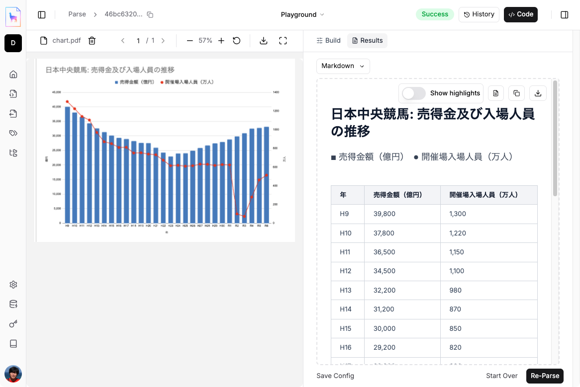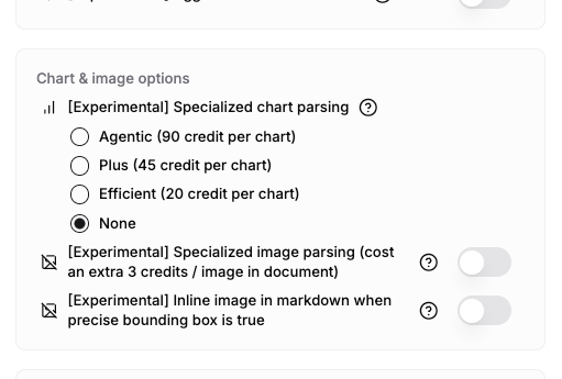 とりあえずデフォルトで選択されていた「Agentic(10 cred)」でパースしてみる。