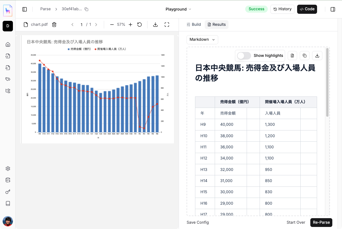 これをPDF化(つまりグラフは画像)して、LlamaCloudで試してみようと思う。