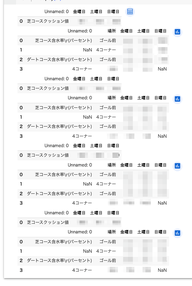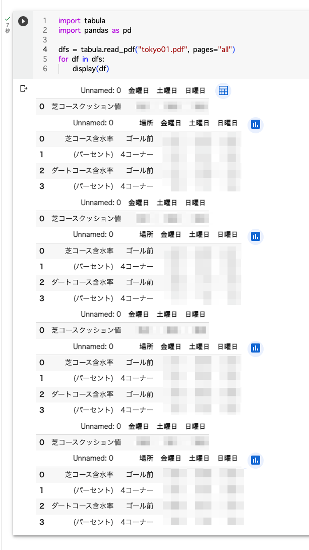引き続き、以下で公開されているJRAの過去の馬場情報(クッション値・含水率)についてのPDFを使ってみる。Colaboratoryで。