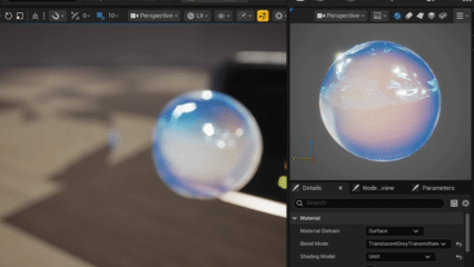 泡のエフェクトはほとんどマテリアルで完結するので、最近作ってみたこちらの作り方をご紹介! DOF を効かせていてちょっとズルい感じはしますが、こんな絵を無理矢理作ることもできそう。