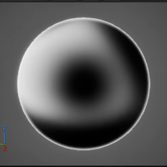 変形部分だけプレビューするとこんな感じ。強く変形させると球体モデルの「極」の部分で破綻するので、強く入れたいなら極の部分に変形のフェードを入れるなど工夫がいりそうです。
