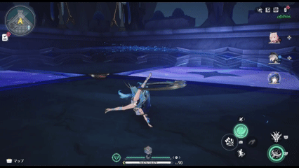 ユーノの通常攻撃3段目。最後に分身体が本体と対照的に動いて本体と合わさる流れが凄い‥