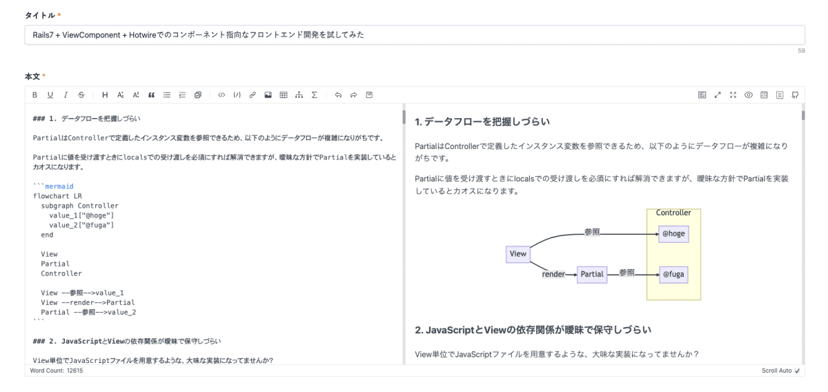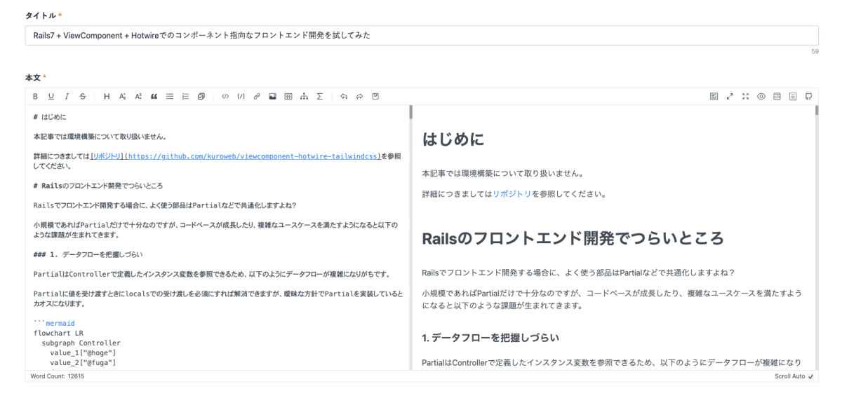 今回の解決策としては、リッチテキストではなく、Markdown記法そのもので記事を管理できるようにします。