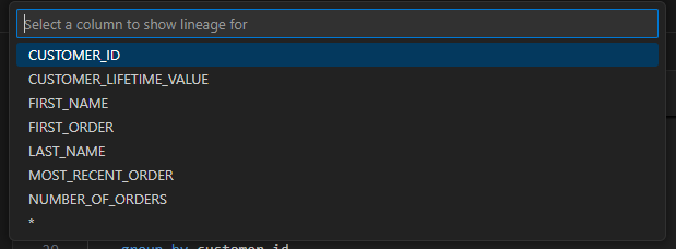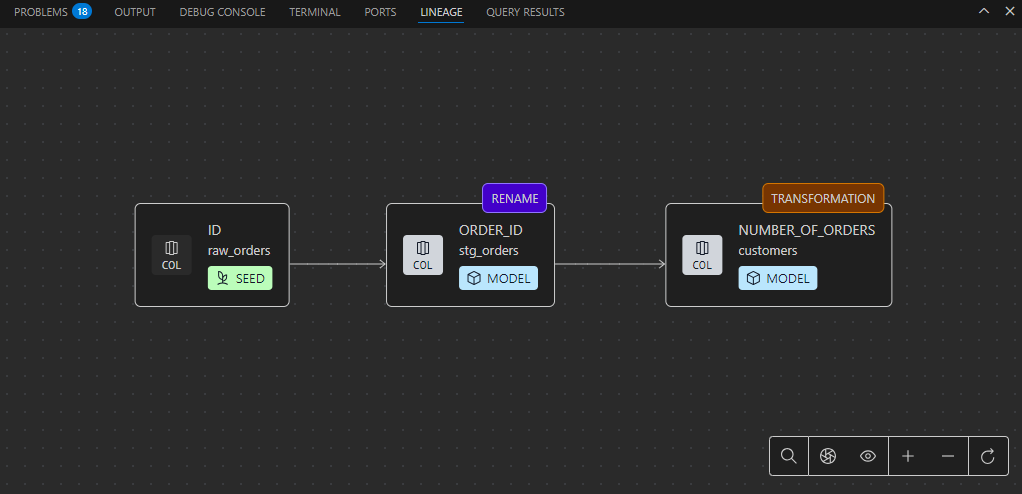 - SDFはカラムの直接的なリネージュだけでなく、whereやgroup byなどの間接的なリネージュも表示できるが(Lineage - SDF)、dbt Fusion enginでは今のところ直接的なリネージュのみ表示される