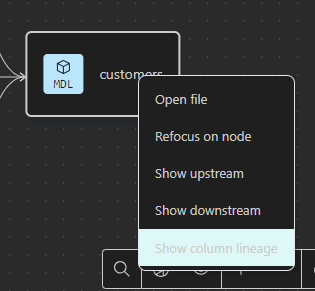customersを右クリックして、Show column lineageをクリックします。