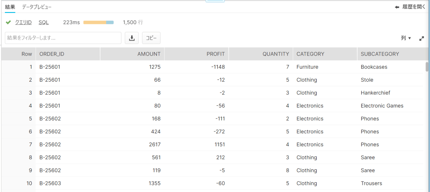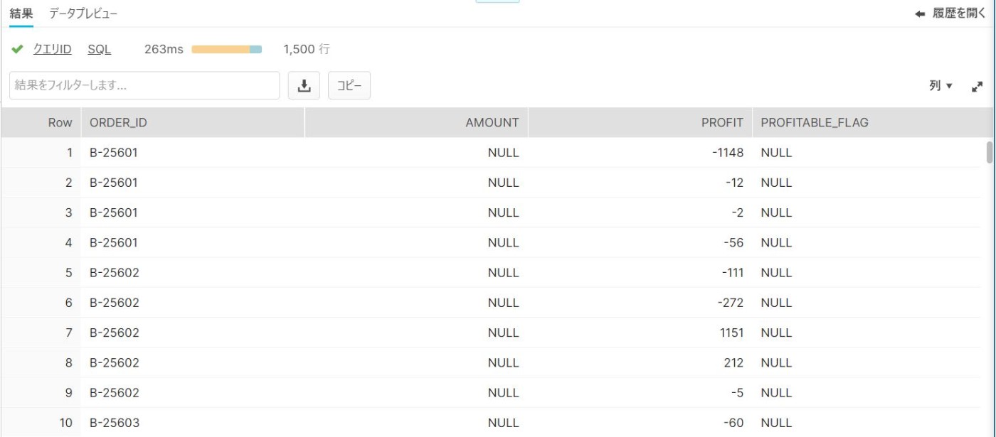 1行目の(ORDER_ID,PROFIT)でカラムを指定している