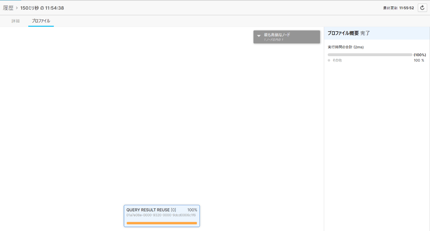 さらにクエリプロファイルを確認すると、QUERY RESULT REUSEのみとなっています。