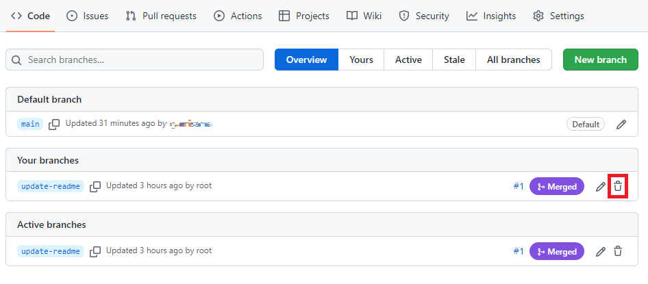 今回はGithub上で編集した方を削除します。