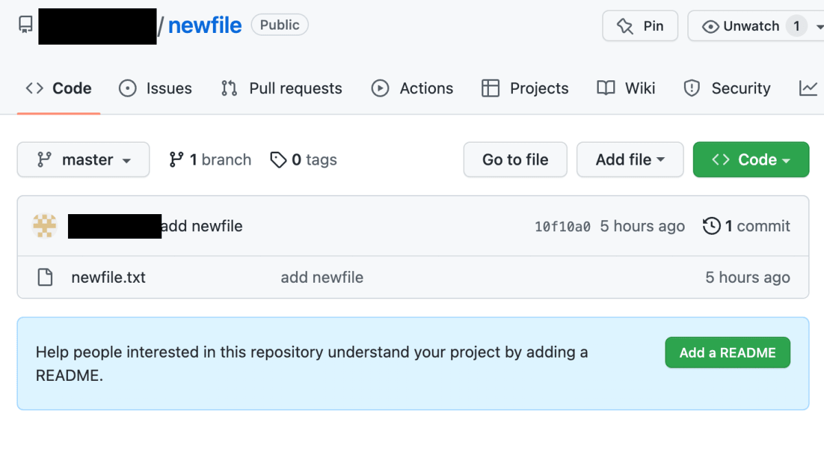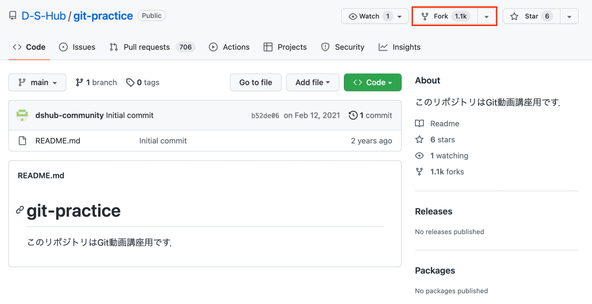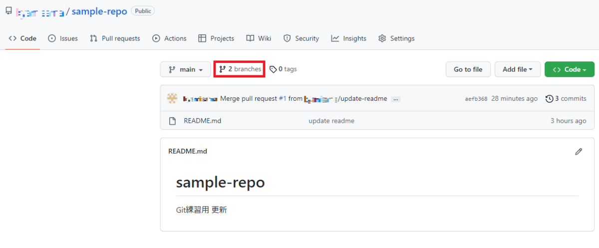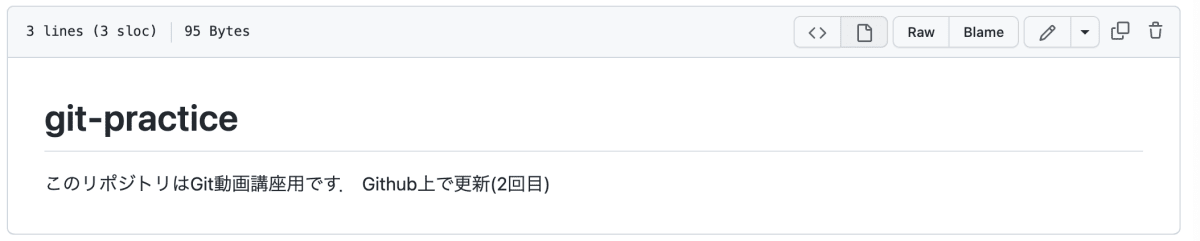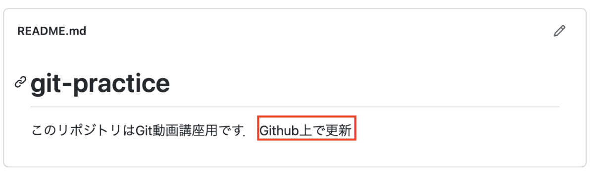まずはリモートリポ上でREADME.mdファイルを編集します。
