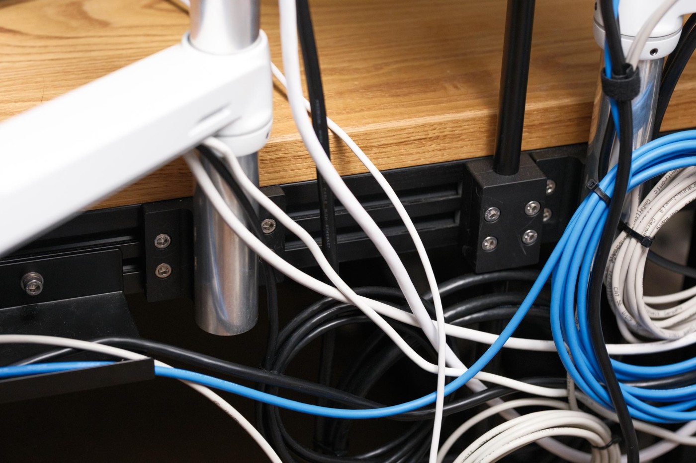 アルミフレームによる机の自作は、その剛性や拡張性の高さから根強い人気があります。机の設計は架台を作るようなものでそこまで付け加えることもありませんが、アルミフレームの魅力はあらゆるものを机に取り付けられることにあります。