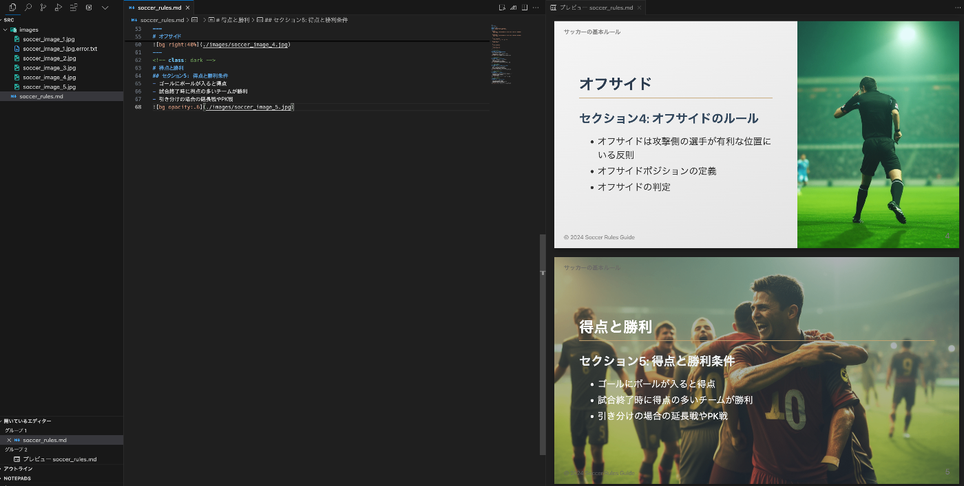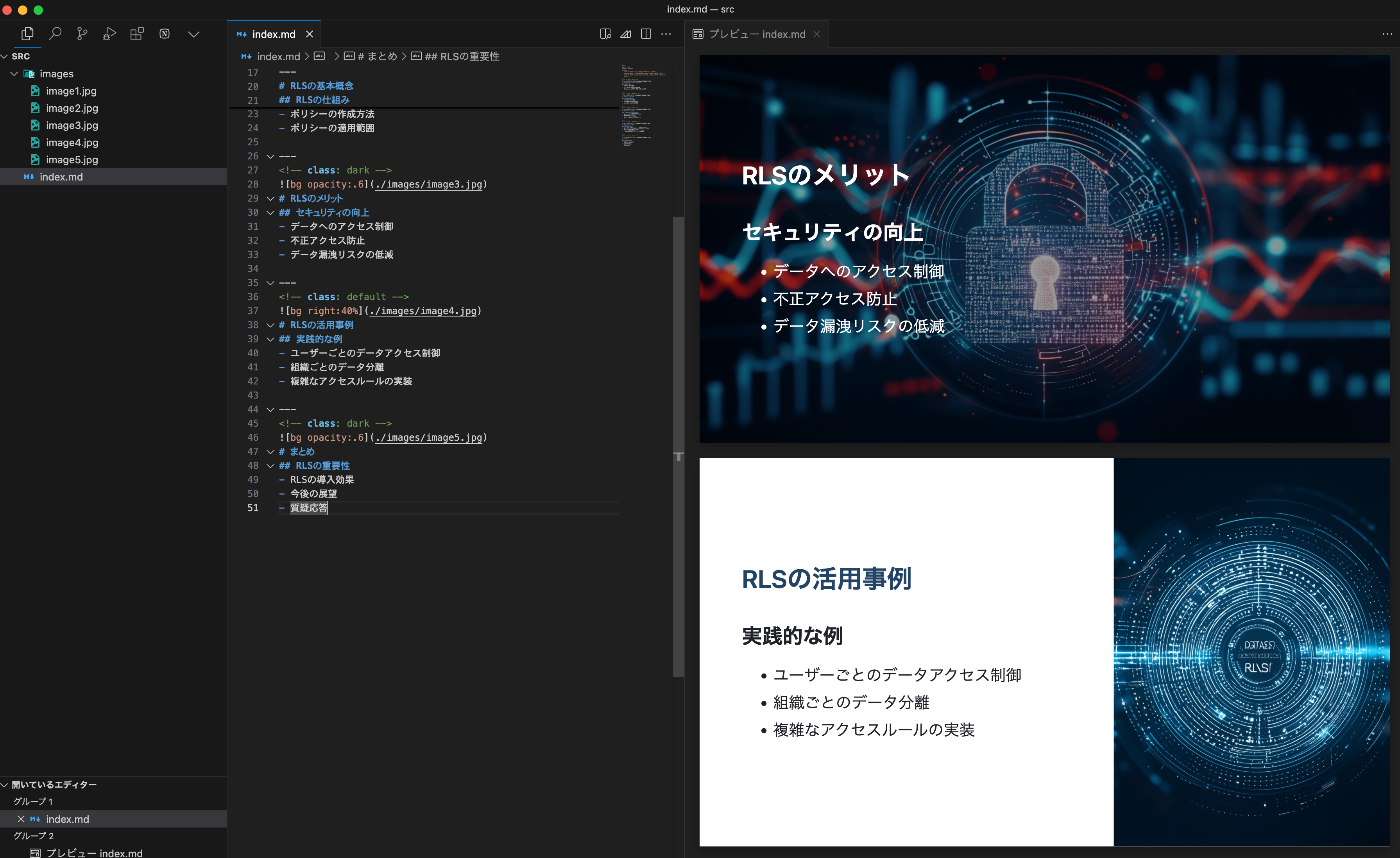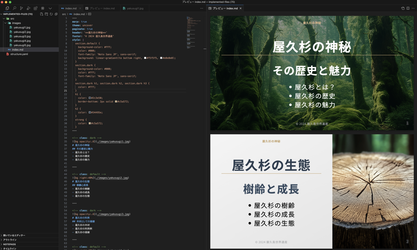 ・ディレクトリ構造は ./index.marp ./images/*.jpg