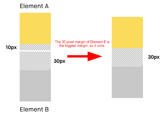 marginの相殺とは、兄弟要素でmargin-botttomとmargin-topが重なりあう場合、大きい方が優先される現象のことです。