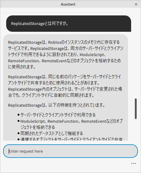 アシスタントとは、Robloxで用意されているAIによるサポートツールです。