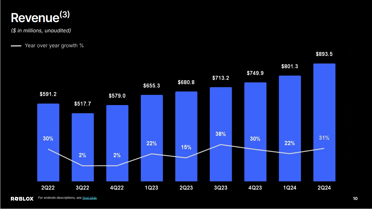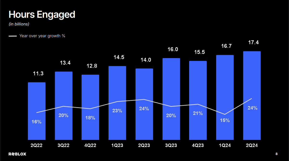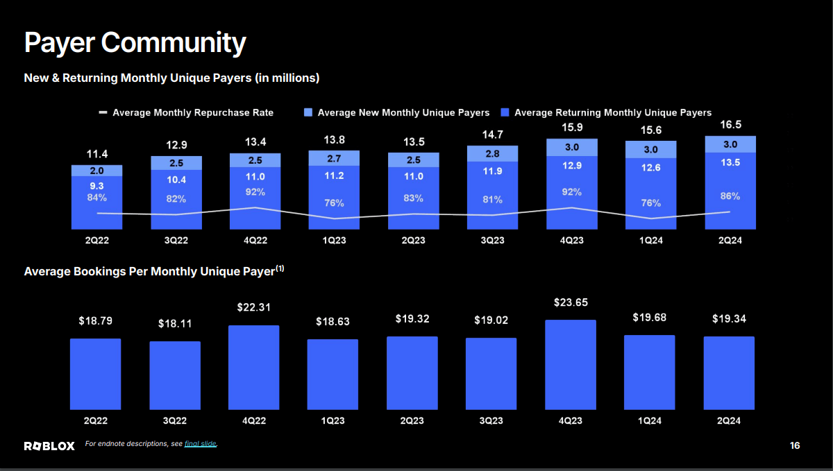 【Roblox】Roblox2024年第2四半期の決算資料から、プラットフォームとしての魅力度を探ってみる