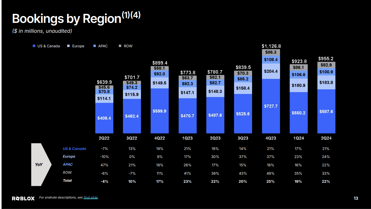 - 現状の収益のメインは北米&カナダユーザーですが、APACの収益やRobux購入額の成長率も大きい為、今後APACユーザーの収益性の更なる向上に期待できます
