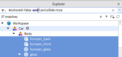 | Vector3やColorなどの完全な比較 | 値の等価性、比較の両方で使用できる演算子 | Size = "20, 5, 20" | Sizeが x = 20, y = 5, z = 20 に該当するインスタンスをフィルタリング |