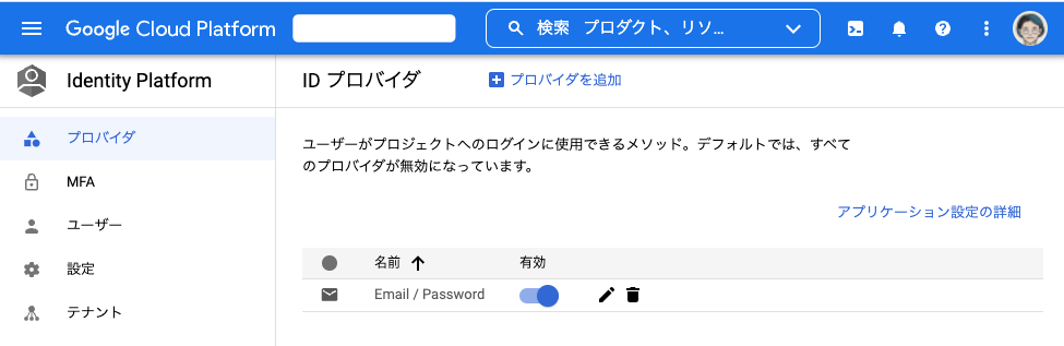 GIP のテナントを作成して、Email / Password でのログインを有効にしておきます。また、テスト用のユーザーを作成しておきます。テナントの作成には Google Cloud の課金の設定が必要です。