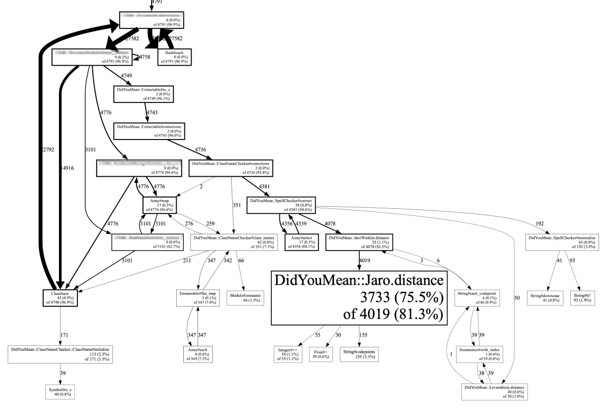 ローカルで同じレスポンスを利用して処理を試したところ、同じ程度の時間がかかり事象を再現できました。そこで stackprof を利用して詳細なプロファイルを取得してみた結果、 DidYouMean::Jaro.distance