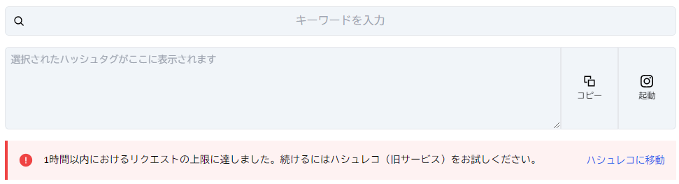 あとは、投稿に付与したハッシュタグを選択して、テキストボックス内の「コピー」ボタンを押下すれば、クリップボードにコピーされるので、その状態で、Instagramを起動して投稿に付与するといった使い方になります。