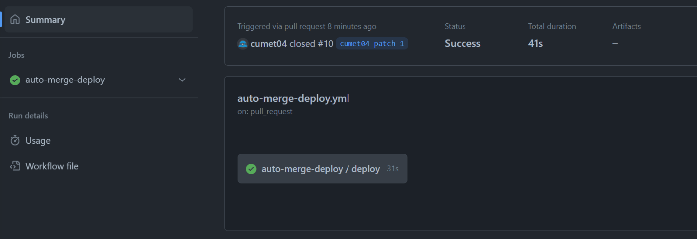 これでauto-merge経由でmergeされた場合はactionsがこんな感じになり、auto-merge-deploy経由でdeployジョブが実行されたことがわかる。