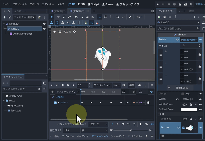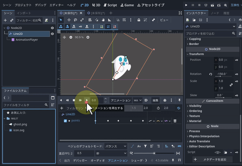 【GodotEngine】Line2Dを使ったストレッチアニメーション
