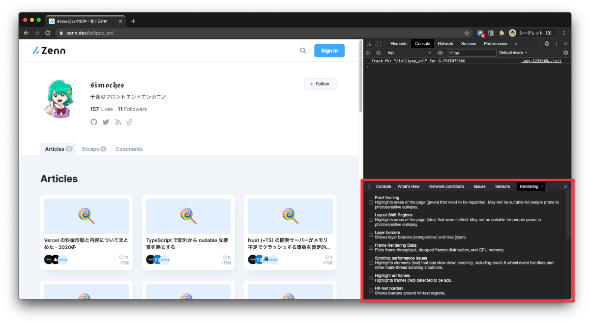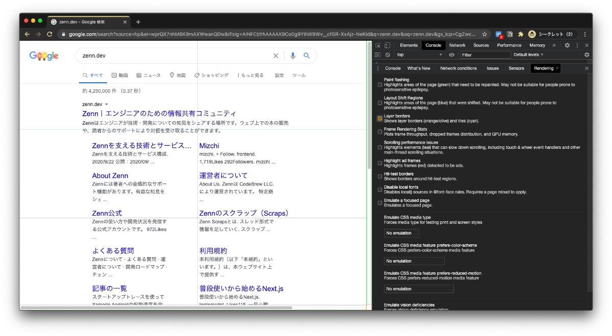 Chrome DevTools に組み込まれている、ページの描画に関する機能を提供する Rendering タブについてまとめます。