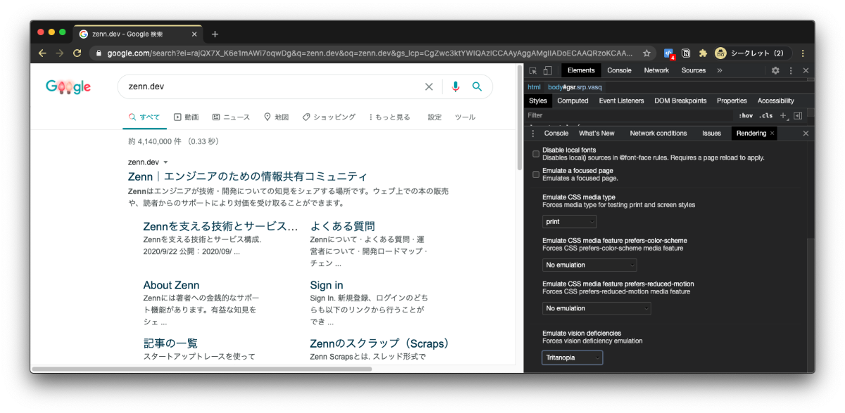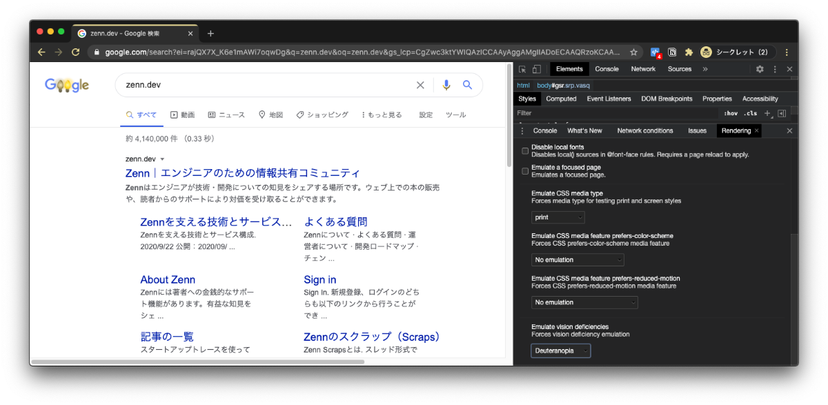 色覚のシミュレーションが拡張機能無しでできるようになってるのがびっくりでした。Chrome 83からの新機能なんですね~