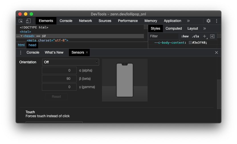 Chrome DevTools の Sensors タブを使ってみよう