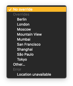 また、 Location unavailable を選択すれば位置情報が取得できなかった状況を再現できます。