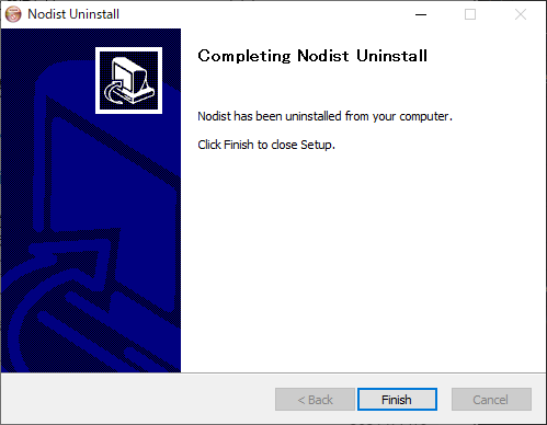 Nodistをアンインストールしたあとは、Program Files以下のNodistフォルダを削除するだけで済みました。