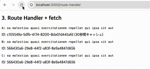 <div>ID: {post.id} (30秒間キャッシュ)</div>