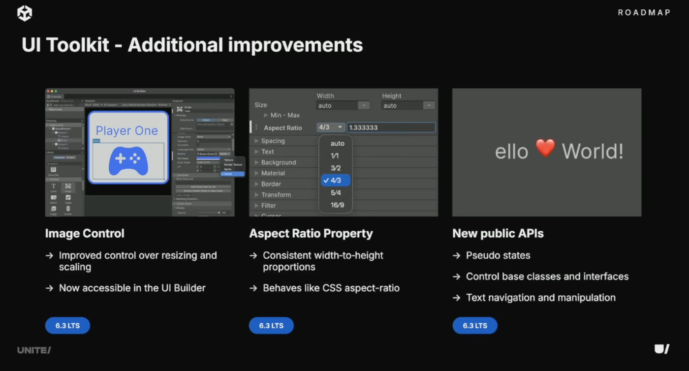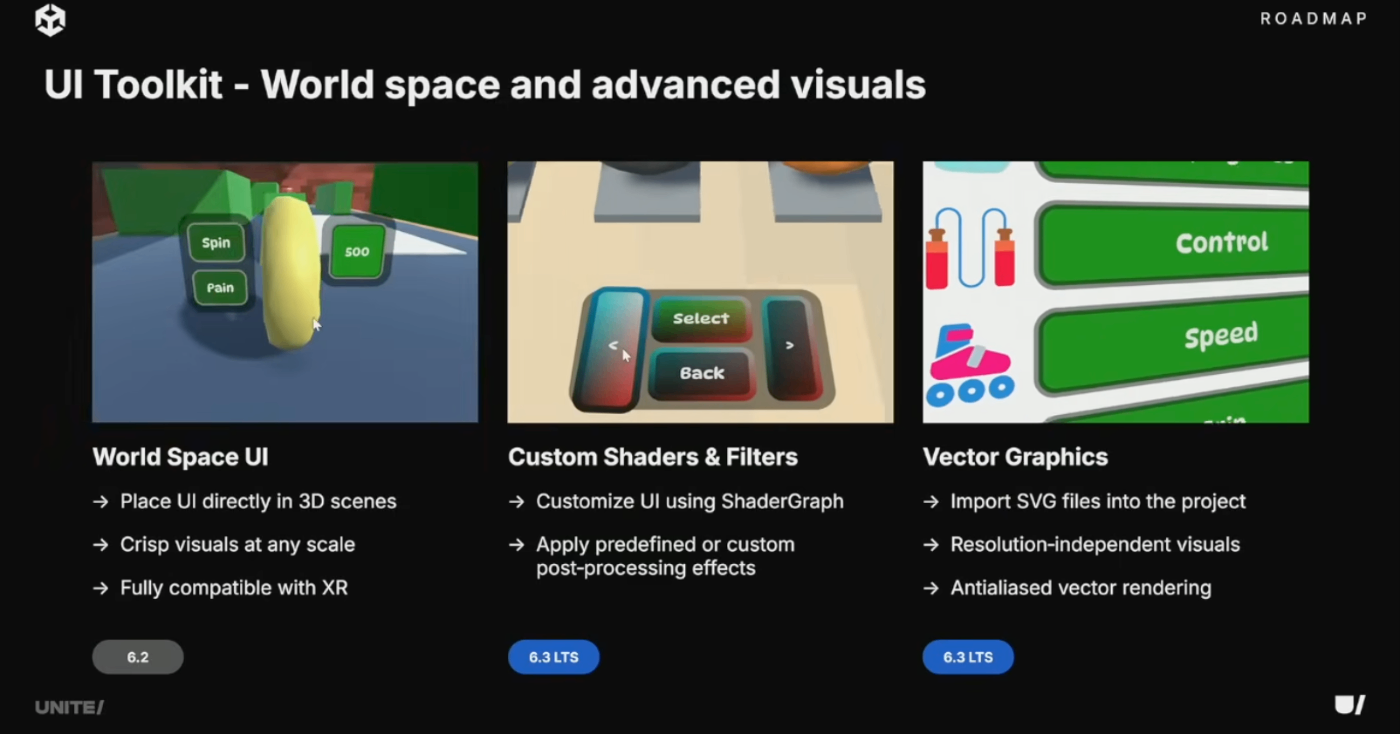 ユーザーからゲームへの導入を妨げていたギャップの解消に取り組んでいる。6.2では最も要望の多かったWorldspace UIをリリース。6.3では同じく要望の多かったカスタムシェーダー、フィルター、ベクターグラフィックスを追加。
